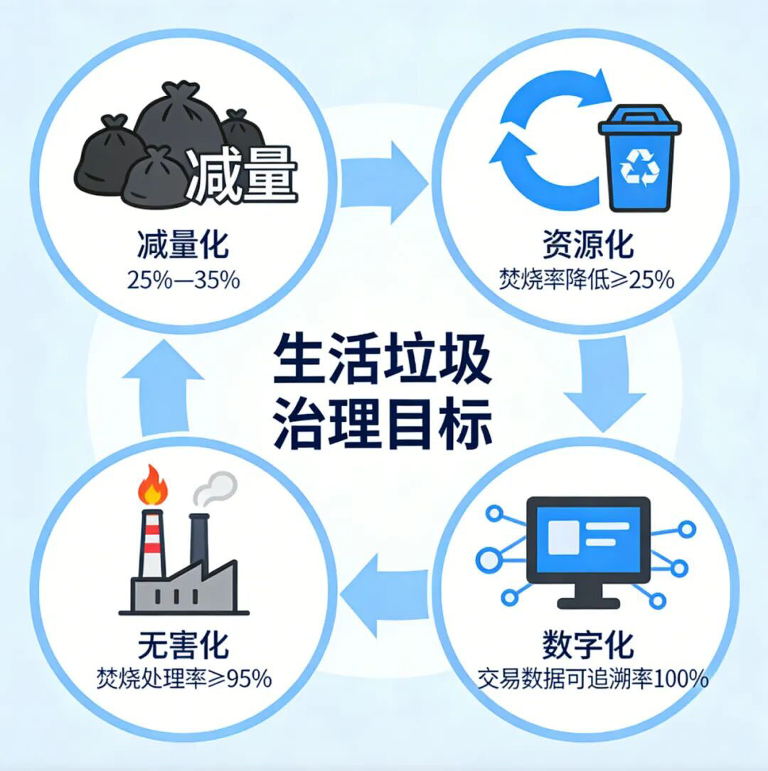 针对上述问题,国家层面持续出台《“十五五”城镇生活垃圾分类和处理设施发展规划》《关于加快构建废弃物循环利用体系的意见》等政策文件,明确提出要加快构建废弃物循环利用体系,推动再生资源回收网络与环卫清运网络深度融合,全面提升生活垃圾减量化、资源化、无害化水平。